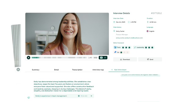Have a natural conversation with Alma, our AI interviewer. Answer questions at your own pace, in your own words.